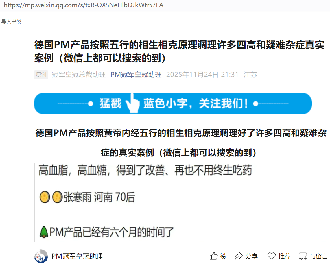 六、德国PM产品按照五行的相生相克原理调理许多四高和疑难杂症真实案例(微信上都可以搜索的到)